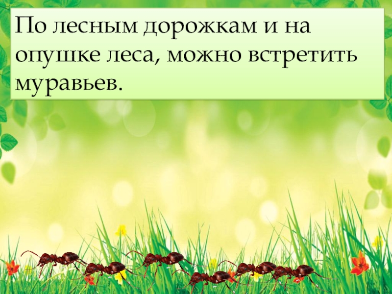 Слайд 17По лесным дорожкам и на опушке леса, можно встретить муравьев.