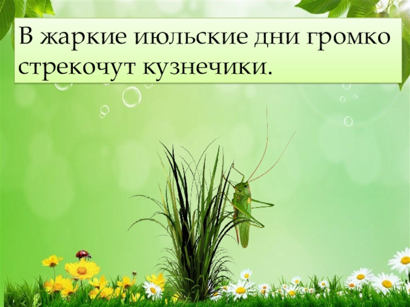 Слайд 16В жаркие июльские дни громко стрекочут кузнечики.
