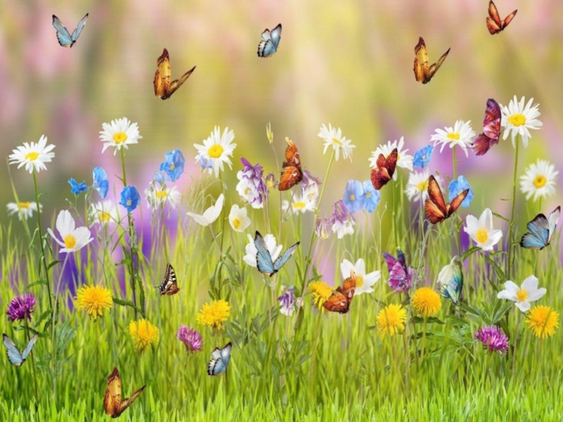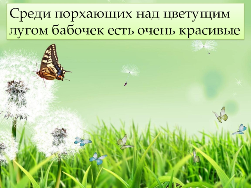 Слайд 20Среди порхающих над цветущим лугом бабочек есть очень красивые