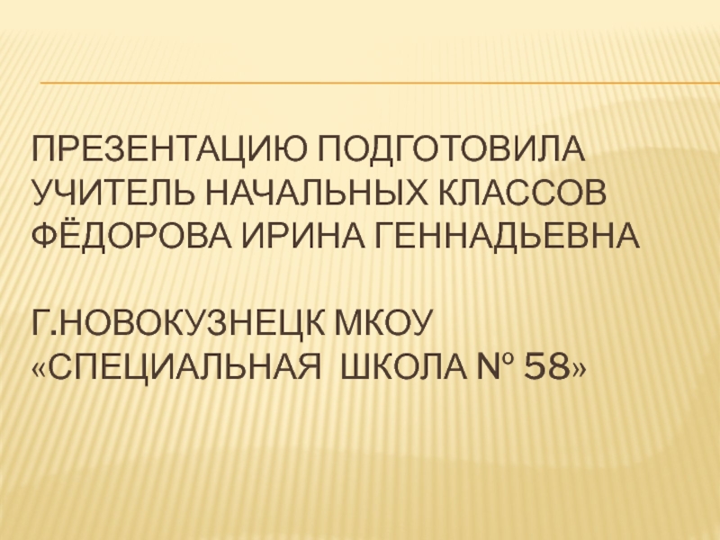 презентацию подготовила  учитель начальных классов Фёдорова Ирина Геннадьевна  г.Новокузнецк МКОУ «Специальная школа № 58»