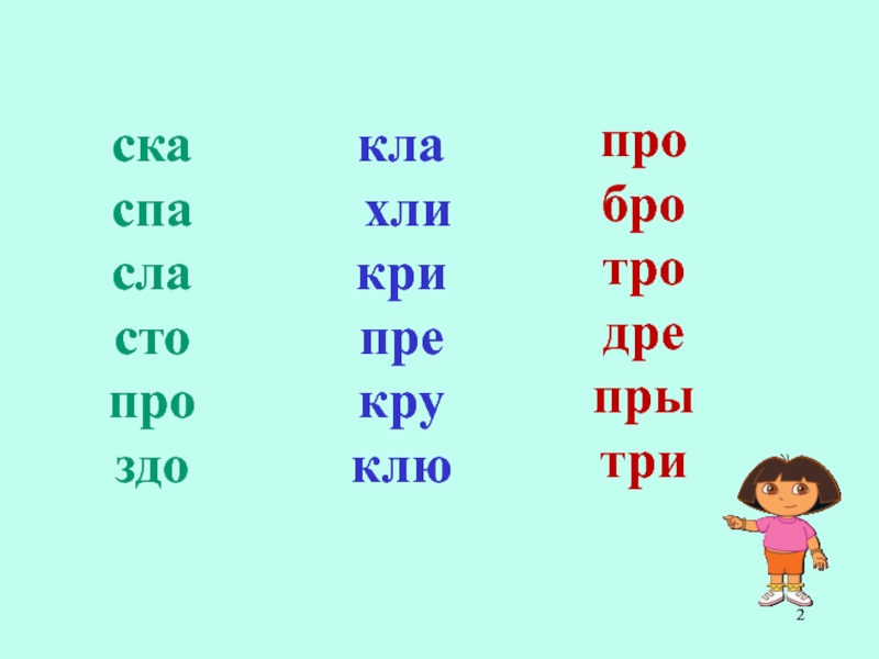 ска спа сла сто про здопро бро тро дре пры трикла  хли кри пре  круклю