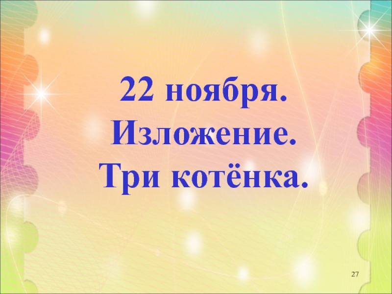 Слайд 27 22 ноября. Изложение. Три котёнка.