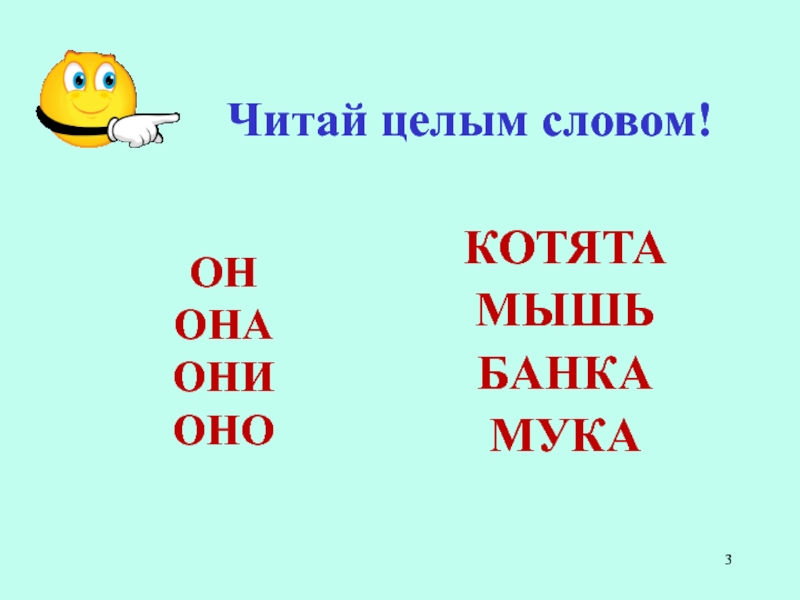 ОН  ОНА ОНИ ОНО   КОТЯТАМЫШЬБАНКАМУКАЧитай целым словом!