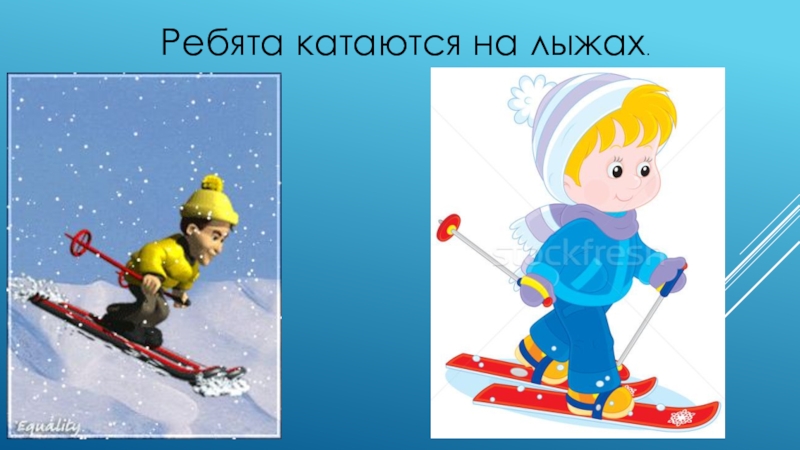Слайд 5 Ребята катаются на лыжах.