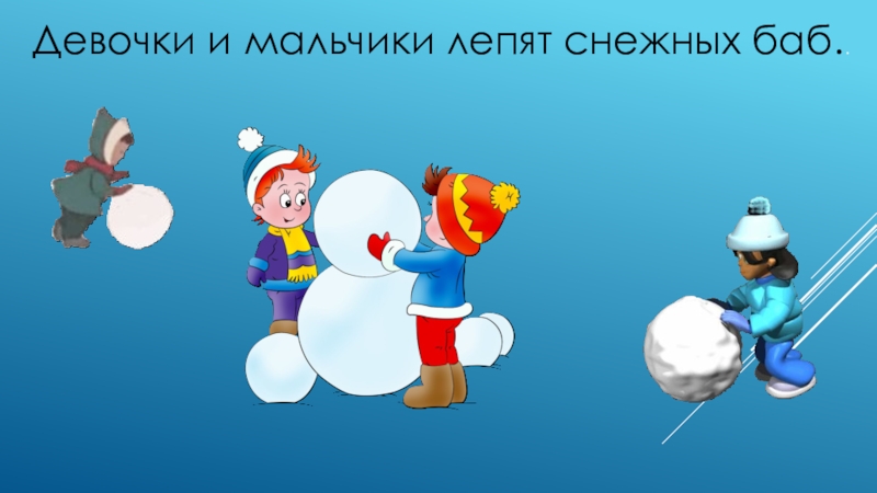 Слайд 9Девочки и мальчики лепят снежных баб..