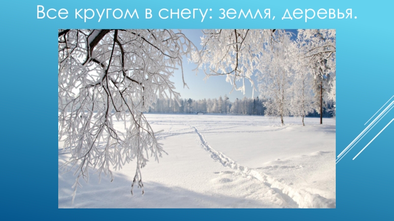 Слайд 3Все кругом в снегу: земля, деревья.