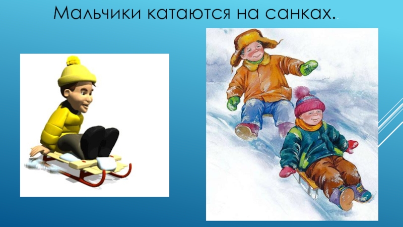 Слайд 6Мальчики катаются на санках..