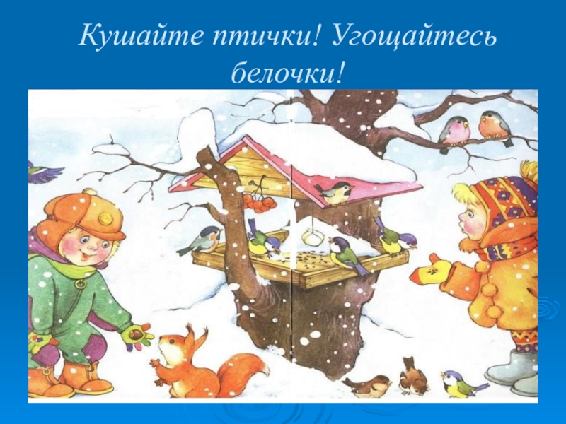 Слайд 7Кушайте птички! Угощайтесь белочки!