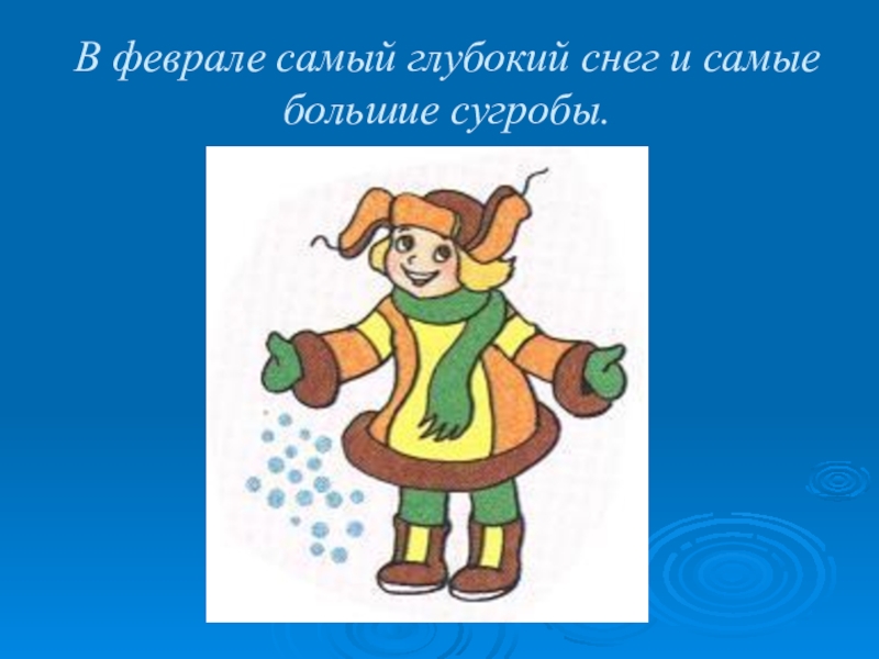 Слайд 4В феврале самый глубокий снег и самые большие сугробы.
