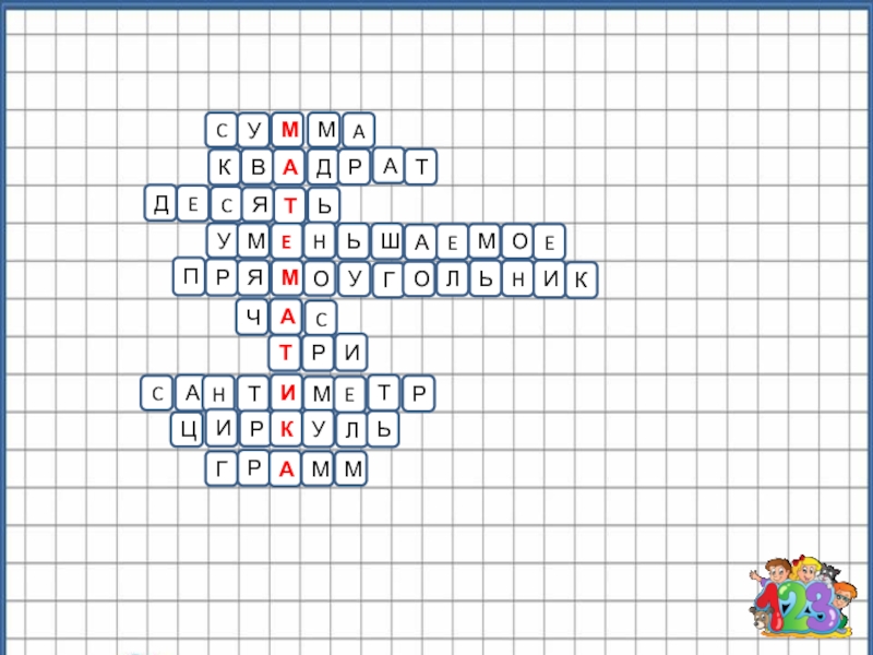 CУAММКВАДРАТДECЯТЬУМEHЬШАEМОEПЯГОМРУЛОЬHИКЧАCТИРCАHТИМEТРЦИРКУЛЬГРАММ