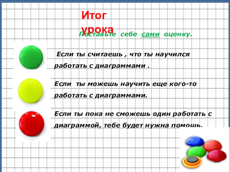 Итог урокаПоставьте себе сами оценку. Если ты считаешь , что ты научился работать с диаграммами .Если ты