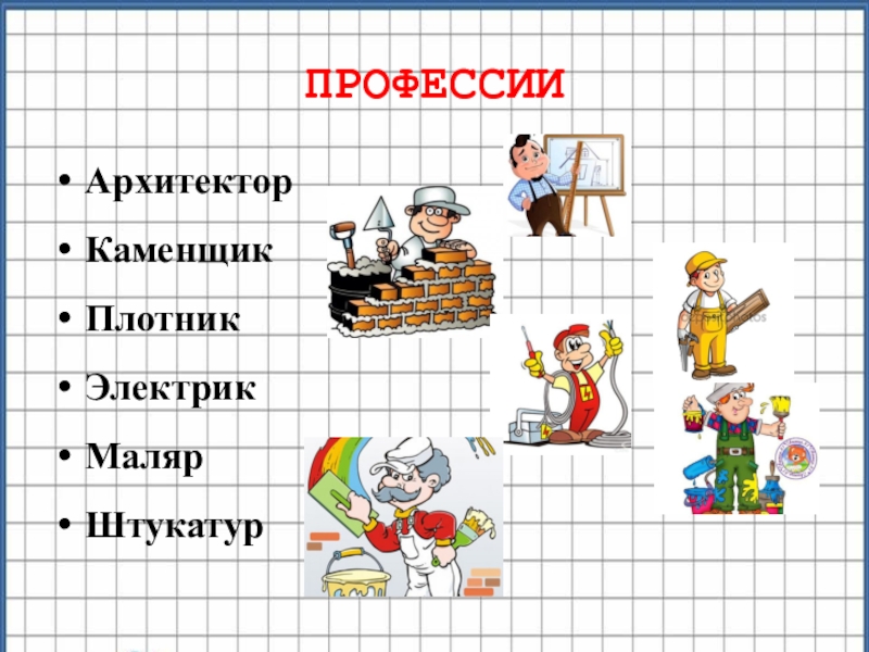 профессииАрхитекторКаменщикПлотникЭлектрик Маляр Штукатур