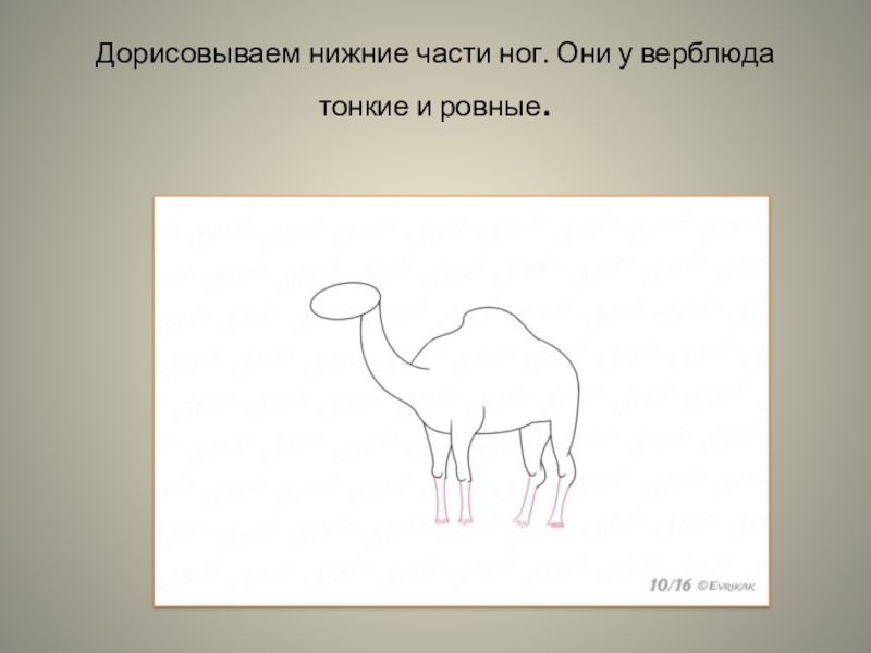 два вида верблюдов: одногорбый и двугорбый верблюды. Мы будем рисовать двугорбого верблюда. Масса верблюда составляет в среднем 750кг и ростом он 210 см. Живут верблюды долго, могут прожить до 40лет. У верблюдов очень хорошо развито зрение и чувство обоняния, воду они могут почуять за 50км. Максимальная скорость бега у верблюдов составляет 16км/ч. Верблюды очень выносливы, они могут обходиться без воды до 2-х недель, а без еды аж целый месяц, вот нам бы так. Итак приступим.