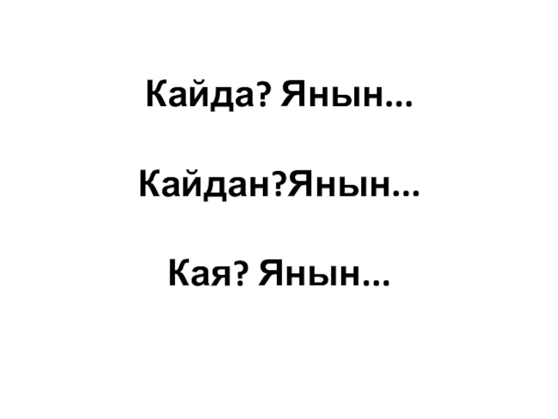 Слайд 5Кайда? Янын... Кайдан?Янын... Кая? Янын...