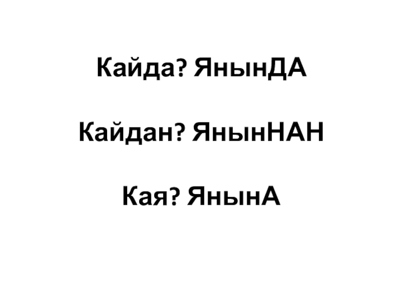 Слайд 6Кайда? ЯнынДА Кайдан? ЯнынНАН Кая? ЯнынА