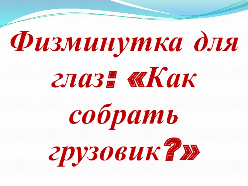 Слайд 16Физминутка для глаз: «Как собрать грузовик?»