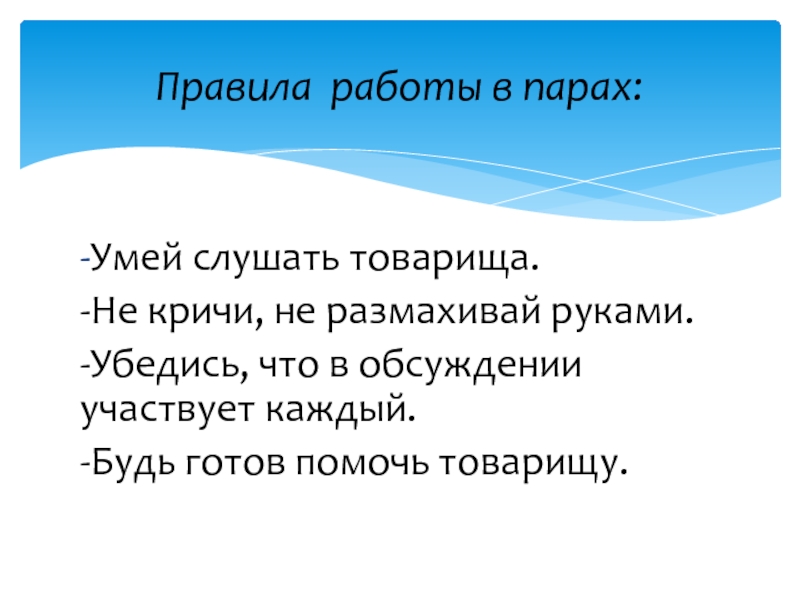 Правила работы в парах: