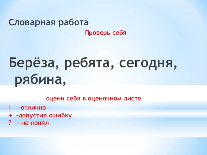 Берёза, город, ребята, дорога, сегодня, иногда, рябина, карандаш.