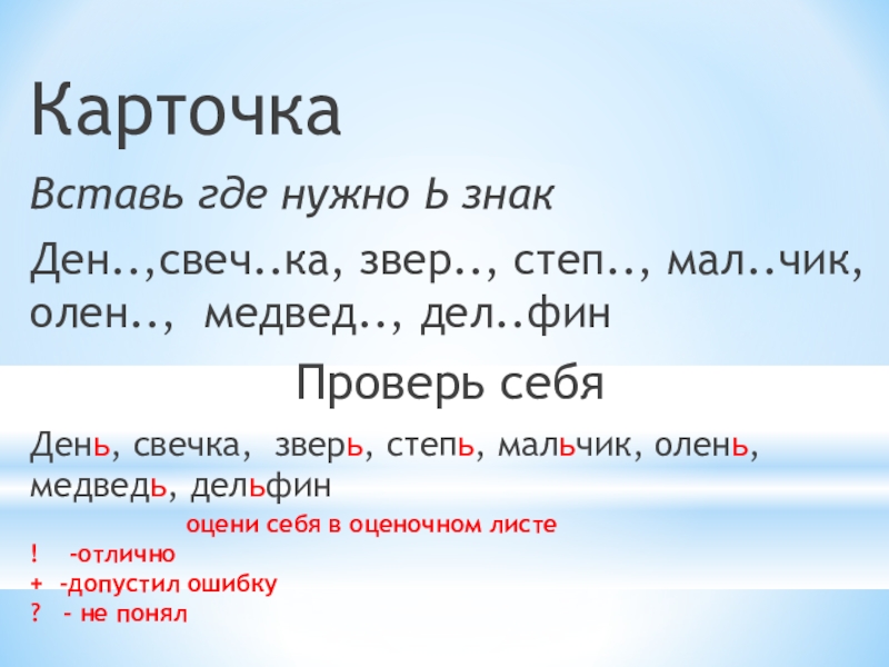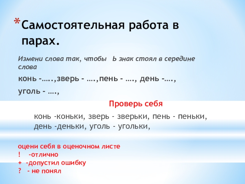 Выпиши слова , у которых есть не меньше двух мягких согласных звуков, а их мягкость на письме была обозначена буквами гласных. Обозначь звуки соответствующими точками.