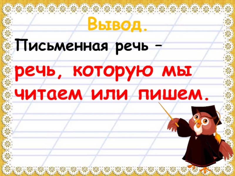Вывод.Письменная речь –            речь, которую мы