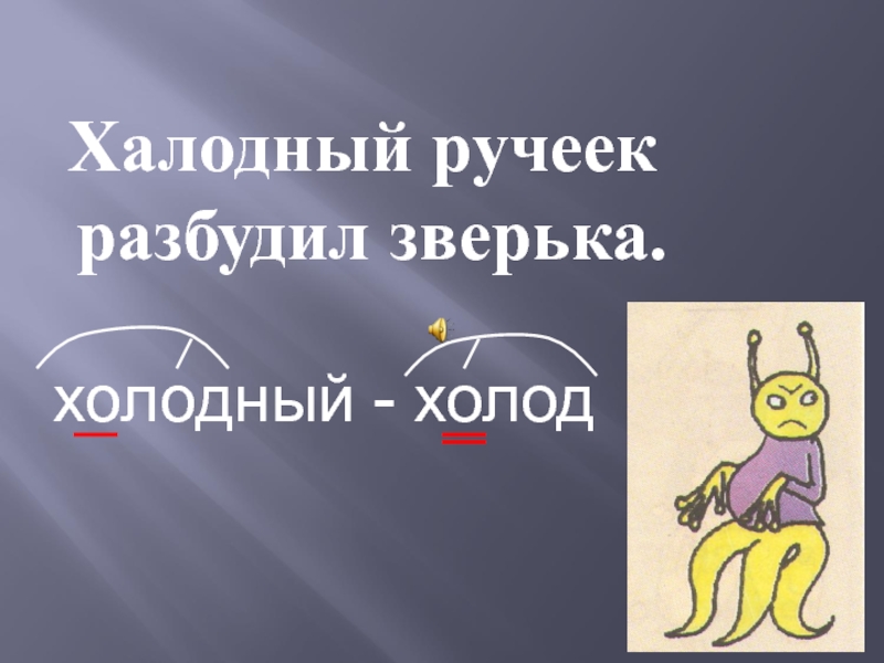 Халодный ручеек разбудил зверька.	холодный - холод