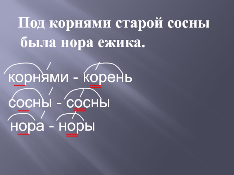 Под корнями старой сосны была нора ежика.корнями - кореньсосны - соснынора - норы