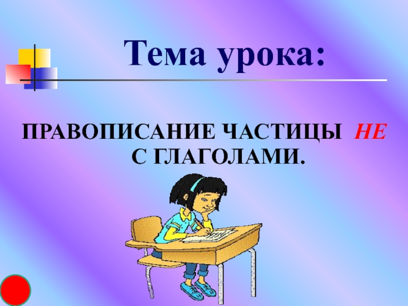 Тема урока:ПРАВОПИСАНИЕ ЧАСТИЦЫ НЕ    С ГЛАГОЛАМИ.