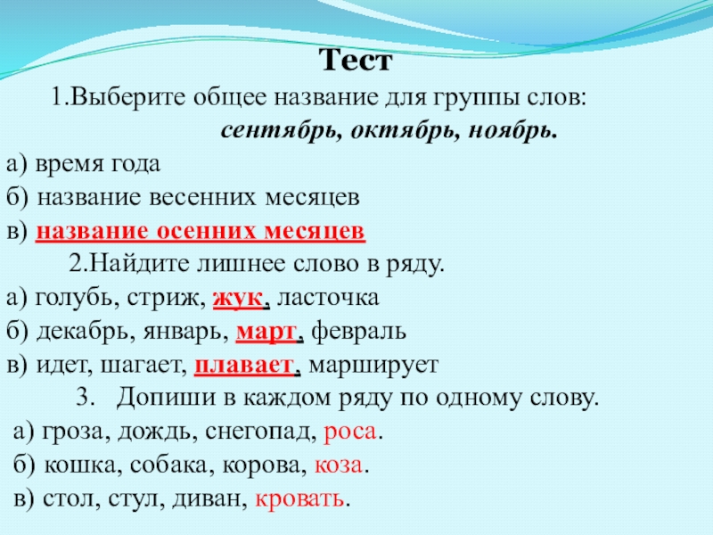 Ворона, медведь, пчела, воробей, ёж, сорока, стрекоза, кузнечик, белка.