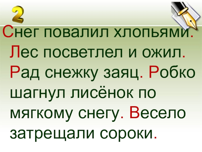 рад снежку заяц робко шагнул лисёнок по мягкому снегу весело затрещали сороки.
