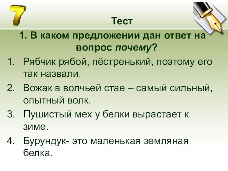 1. В каком предложении дан ответ на вопрос почему?