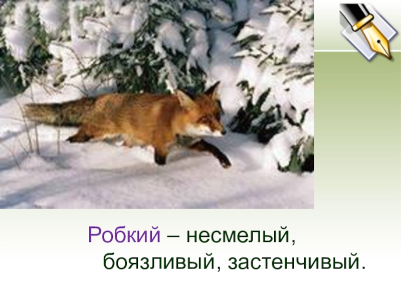 Слайд 4Робкий – несмелый, боязливый, застенчивый.