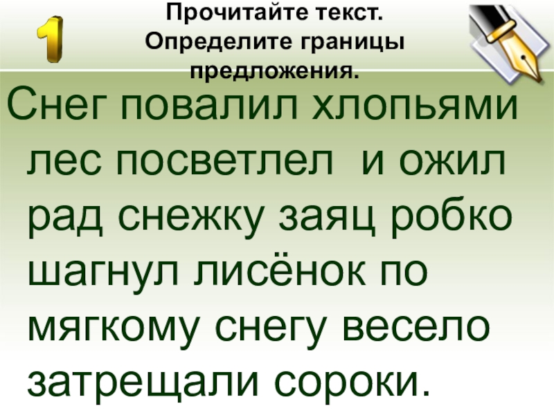 Слайд 2Прочитайте текст. Определите границы предложения.