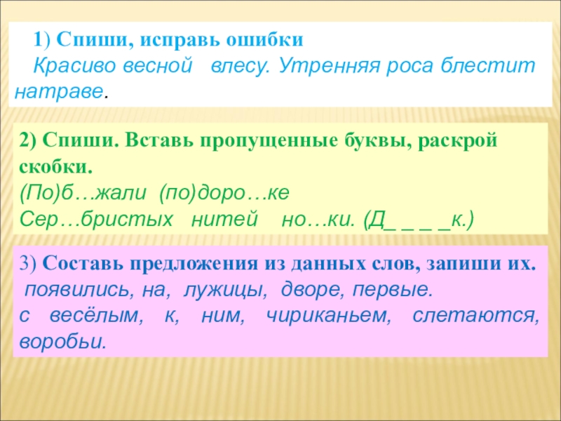 2) Спиши. Вставь пропущенные буквы, раскрой скобки.