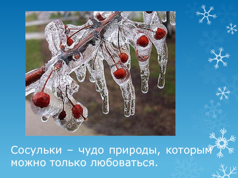 Слайд 12Сосульки – чудо природы, которым можно только любоваться.