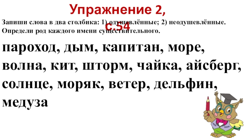 Запиши слова в два столбика: 1) одушевлённые; 2) неодушевлённые.