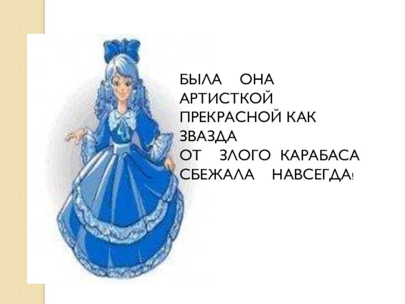 БЫЛА  ОНА    АРТИСТКОЙПРЕКРАСНОЙ КАК  ЗВАЗДАОТ  ЗЛОГО КАРАБАСАСБЕЖАЛА  НАВСЕГДА!