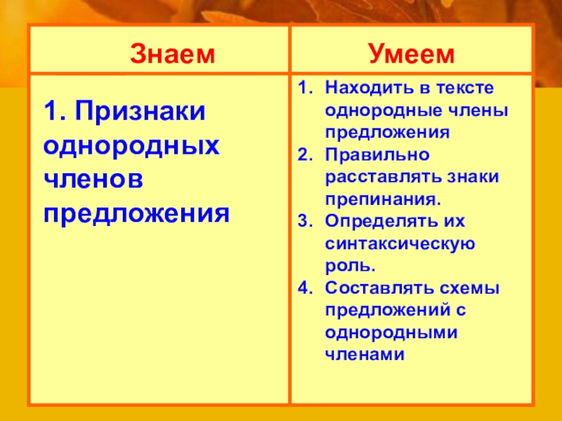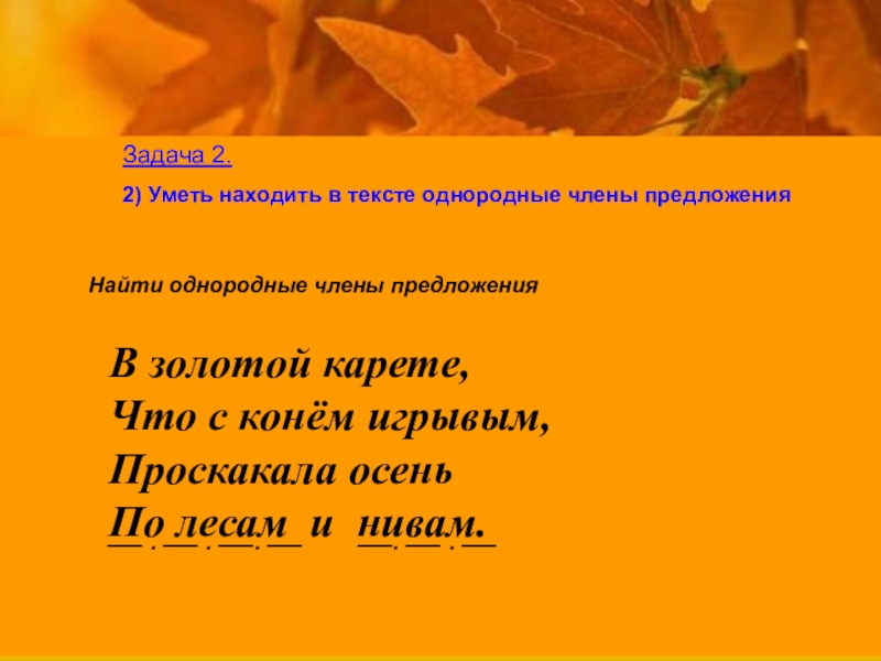 2) Находить в тексте однородные члены предложения