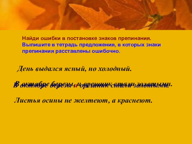 Листья осины не желтеют, а краснеют.