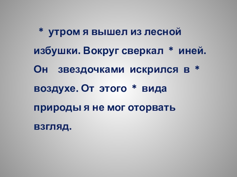 иней. Он звездочками искрился в * воздухе. От этого * вида природы я не мог оторвать взгляд.