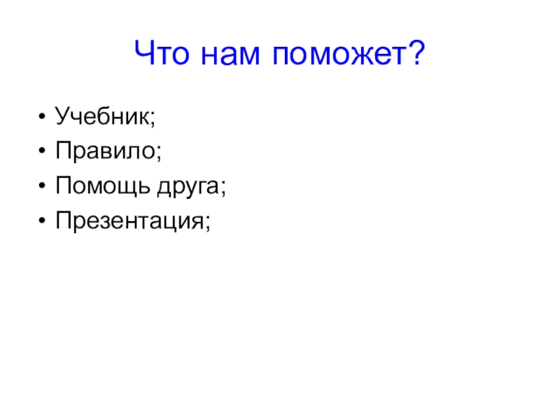 Что нам поможет?Учебник;Правило;Помощь друга;Презентация;
