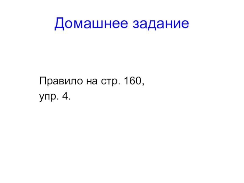 Домашнее задание		Правило на стр. 160,		упр. 4.