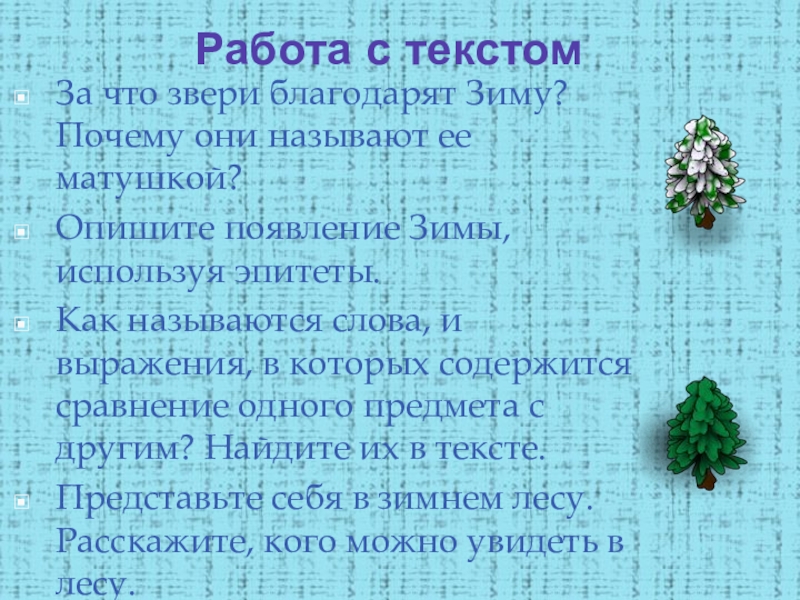 Представьте себя в зимнем лесу. Расскажите, кого можно увидеть в лесу.