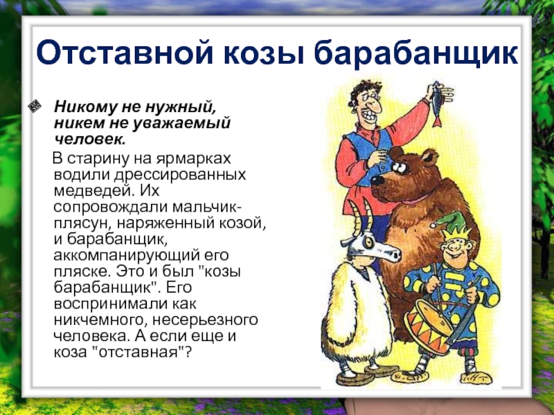 Слайд 15Отставной козы барабанщик