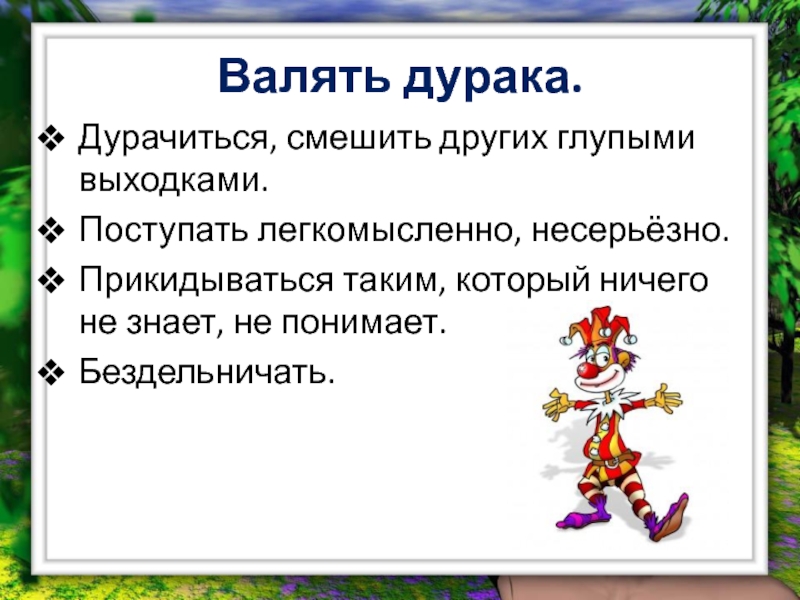 Слайд 7Валять дурака.