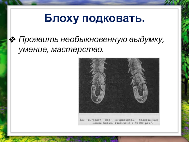 Слайд 5Блоху подковать.