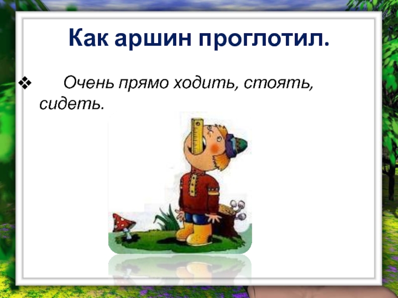 Слайд 2Как аршин проглотил.