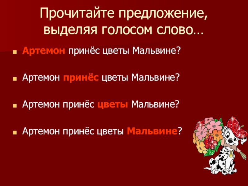 Слайд 10Прочитайте предложение несколько раз, выделяя голосом разные слова