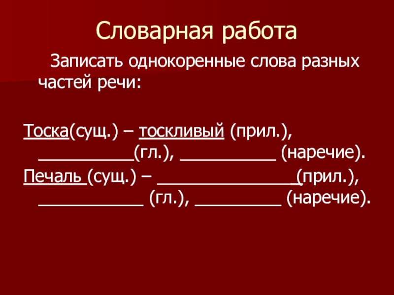 Тоска(сущ.) - (прил.),