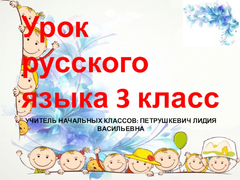 Учитель начальных классов: Петрушкевич Лидия ВасильевнаУрок русского языка 3 класс