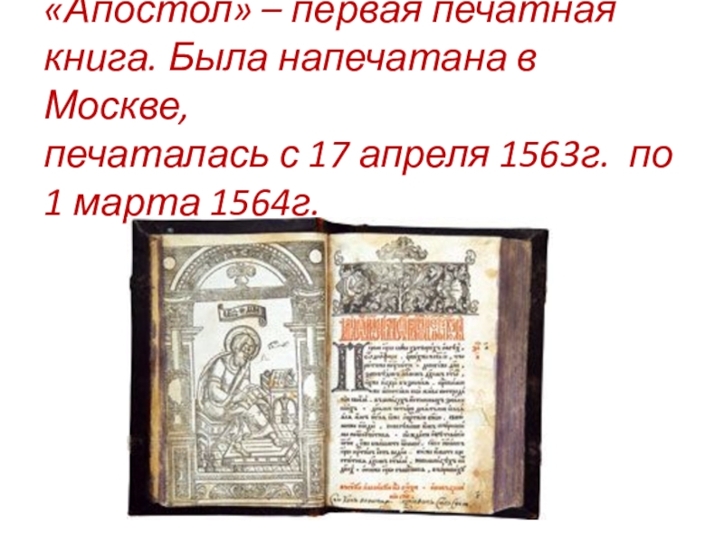 Слайд 6«Апостол» – первая печатная книга. Была напечатана в Москве,